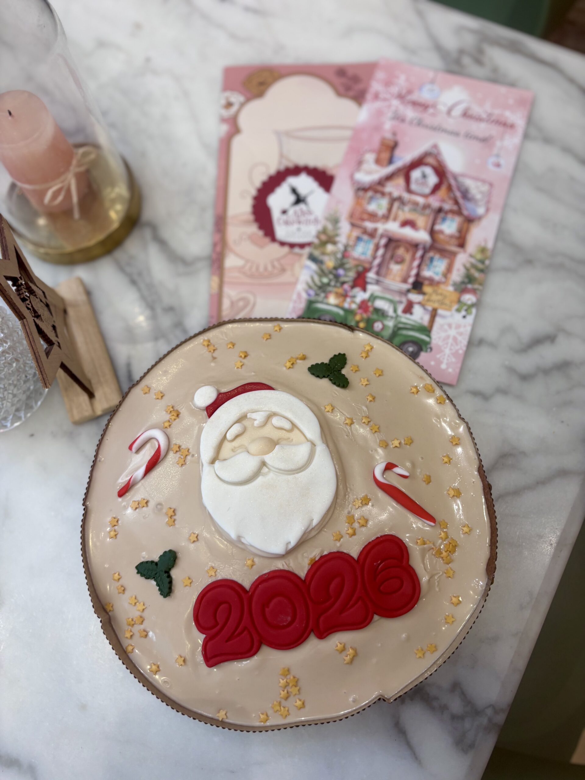 Βασιλόπιτα με κέικ βανίλια με κομμάτια μπισκότου και επικάλυψη πραλίνα bueno
